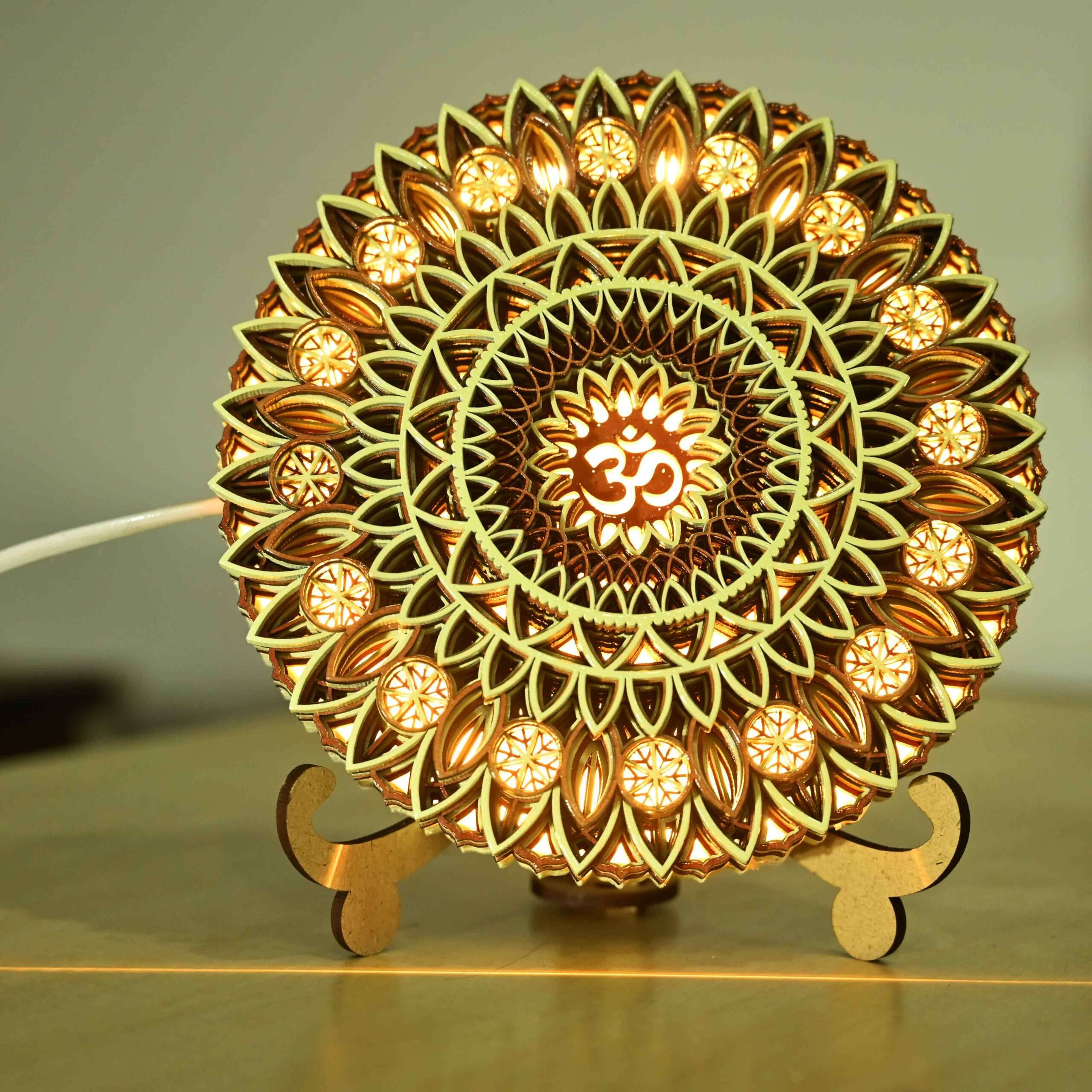 At the heart of this mandala lies a radiant LED lighting system, casting a soft and soothing glow that enhances any space it graces. Whether adorning your bedside table, desk, or shelf, its presence elevates the ambiance of any room.