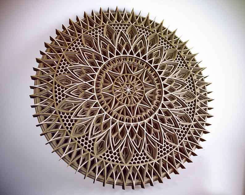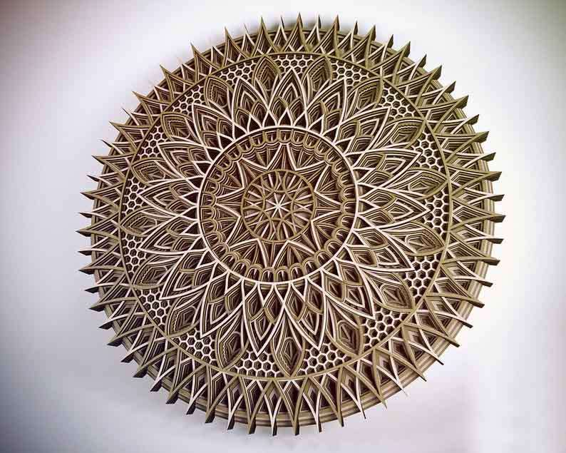 Flowered Multi Layered Wooden Mandala – 15″ x 15″ Inches