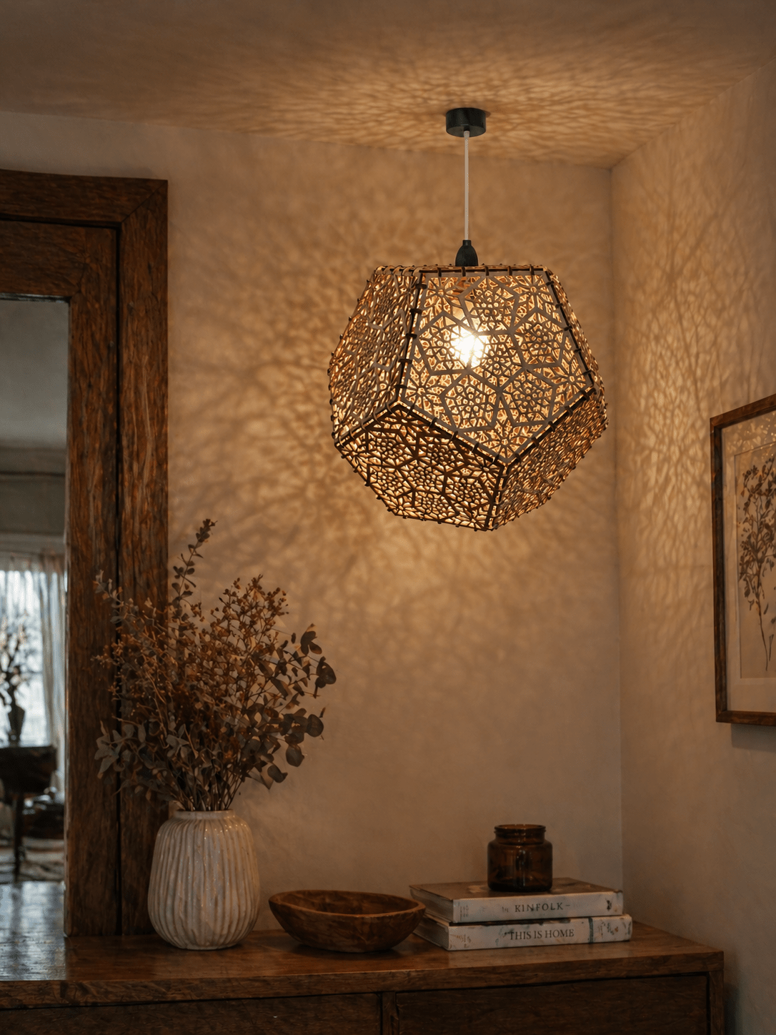 This hexagon pendant lamp is perfect for those who appreciate artistic lighting, modern design, and handcrafted décor. It blends tradition with contemporary aesthetics, making it a must-have décor element for stylish homes.