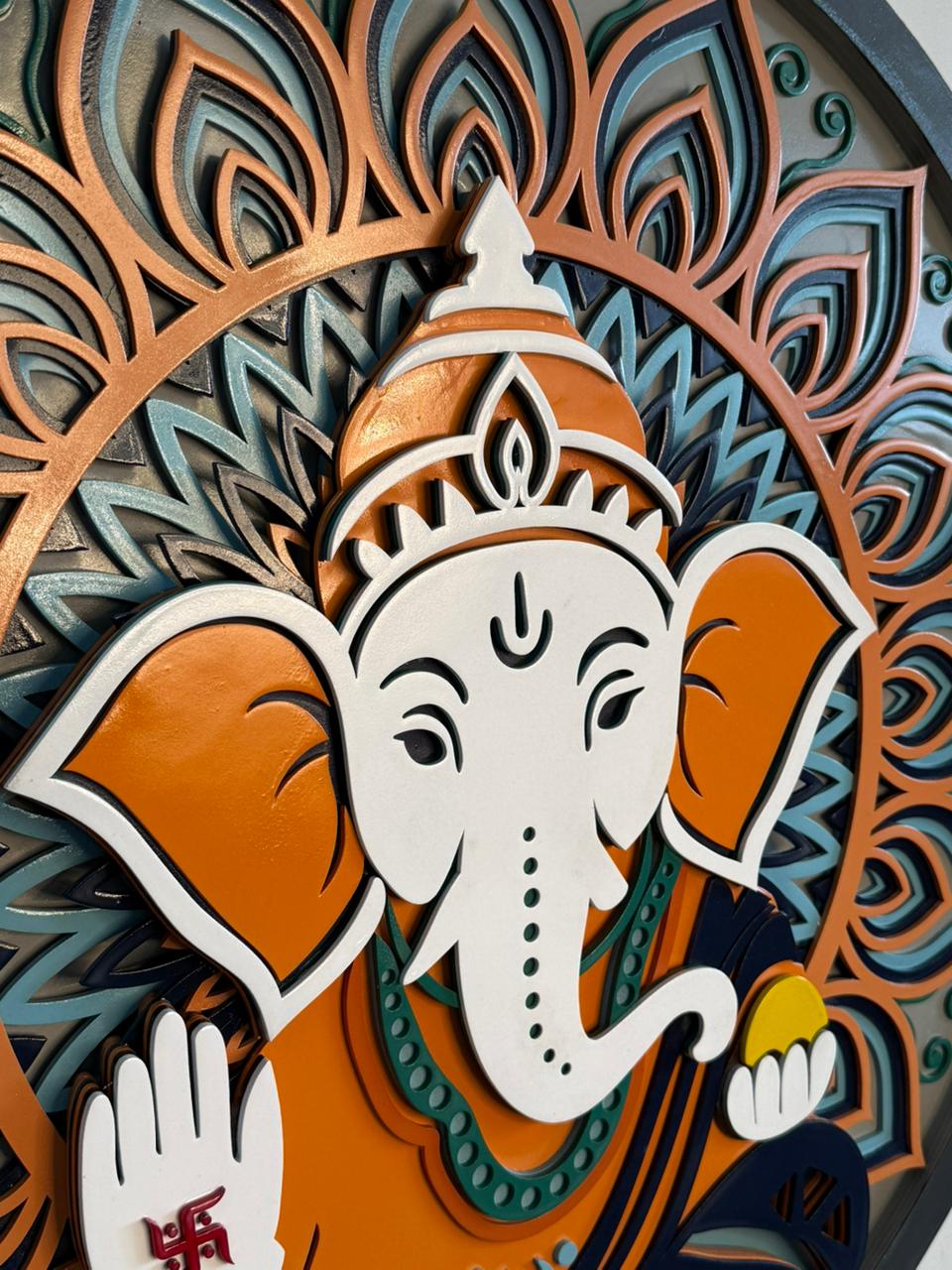 Bring divine elegance and artistic craftsmanship into your space with this multi-layered wooden mandala Ganesha frame, meticulously designed to elevate any wall with depth, dimension, and spiritual charm.