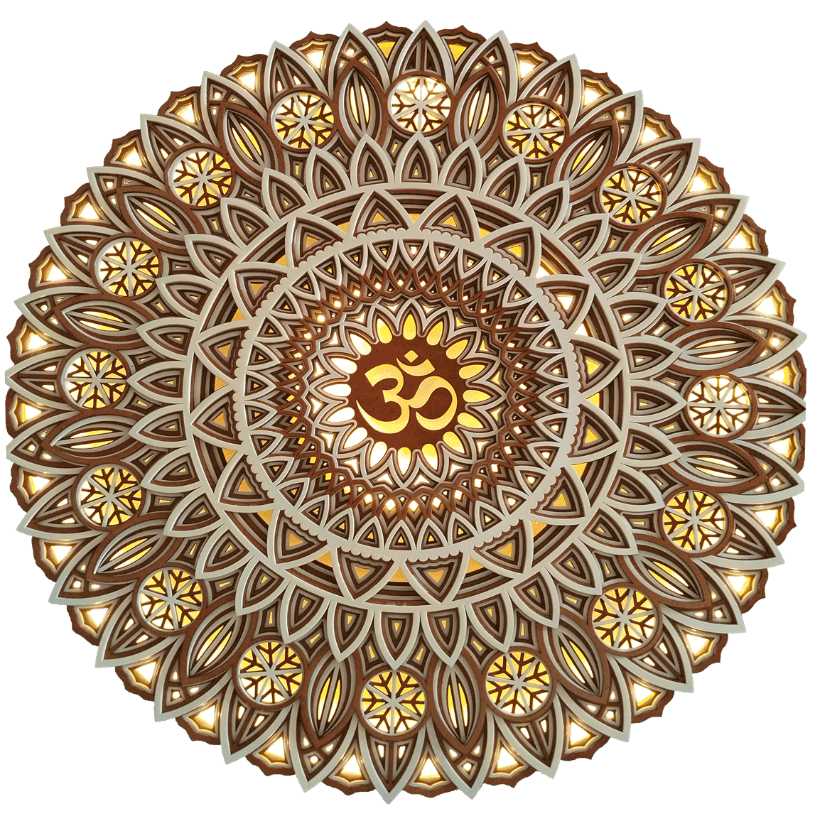 - Enchanting OM Design: Experience serenity and spirituality with our Om Mantra Multi Layered Wooden Mandala. The sacred Om symbol brings peace, harmony, and positive vibrations to your space.
