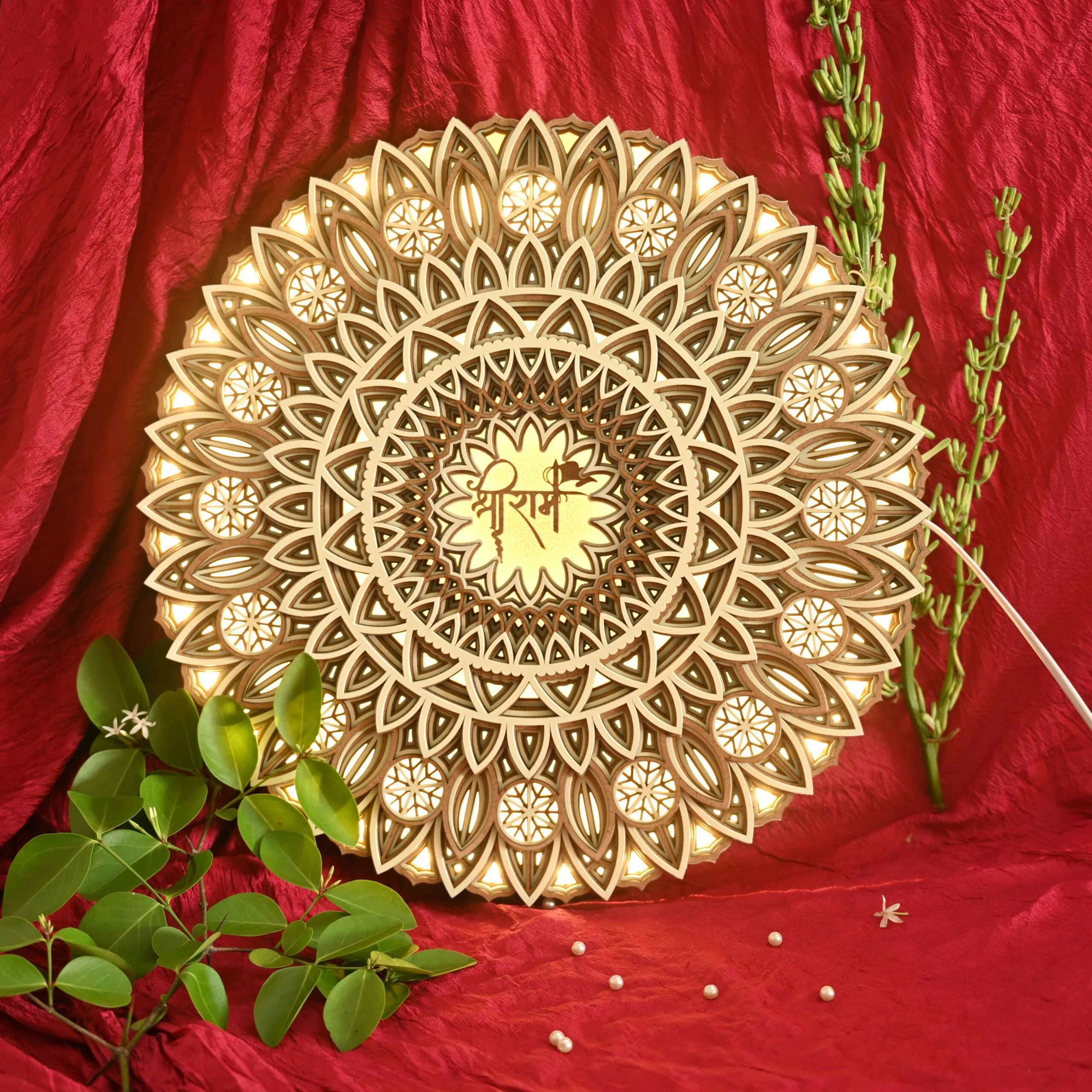 - Elevate your space with the Divine Ram Mantra LED Wooden Mandala.